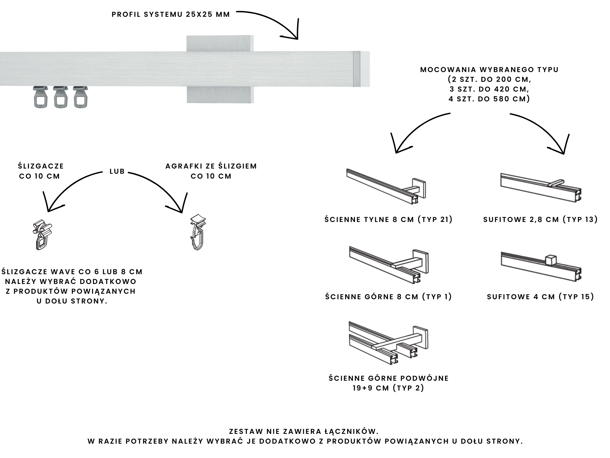 - Cichy i płynny przesuw zasłon lub firan dzięki idealnie spasowanym komponentom,