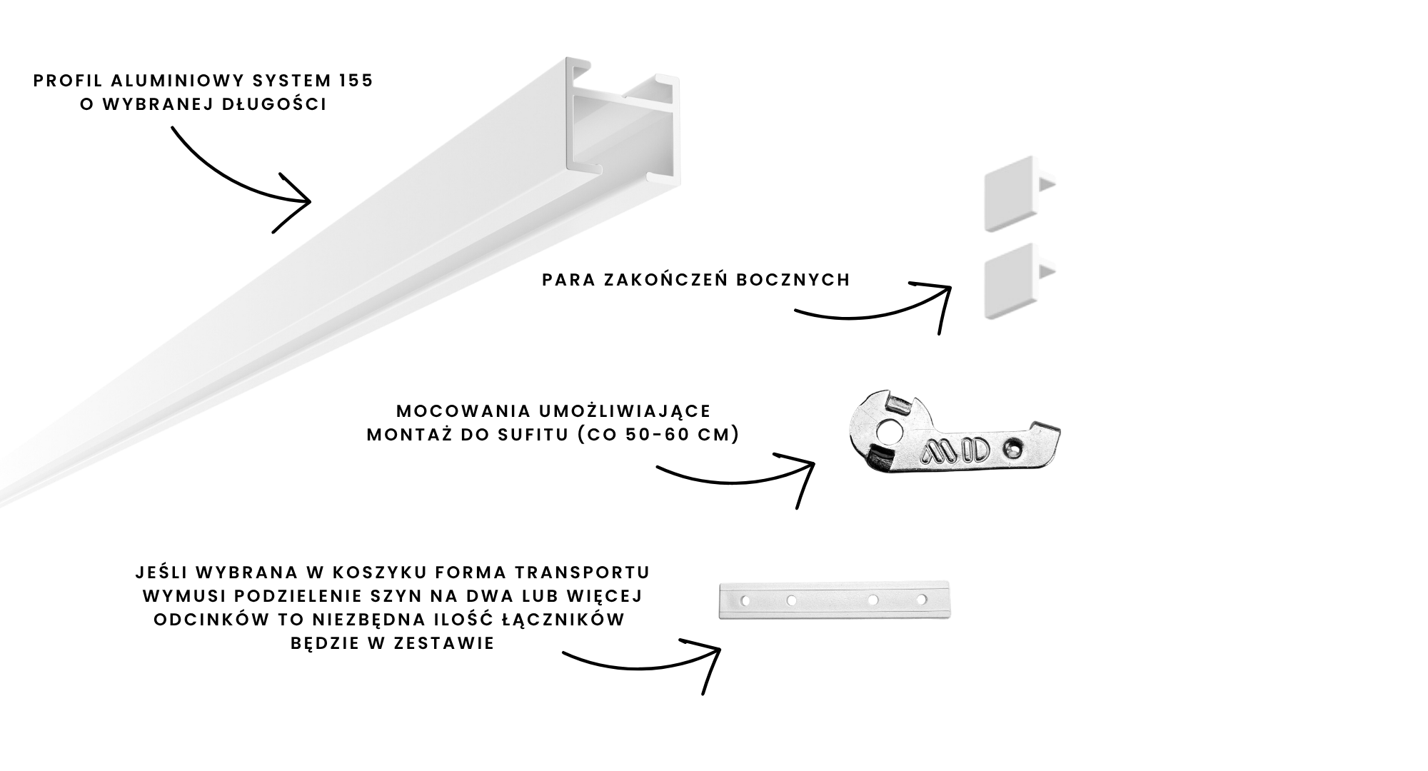 System 155 to pewność wysokiej jakości, estetyki i funkcjonalności. Nasze aluminiowe szyny sufitowe zapewnią niezawodne wsparcie dla Twoich zasłon.