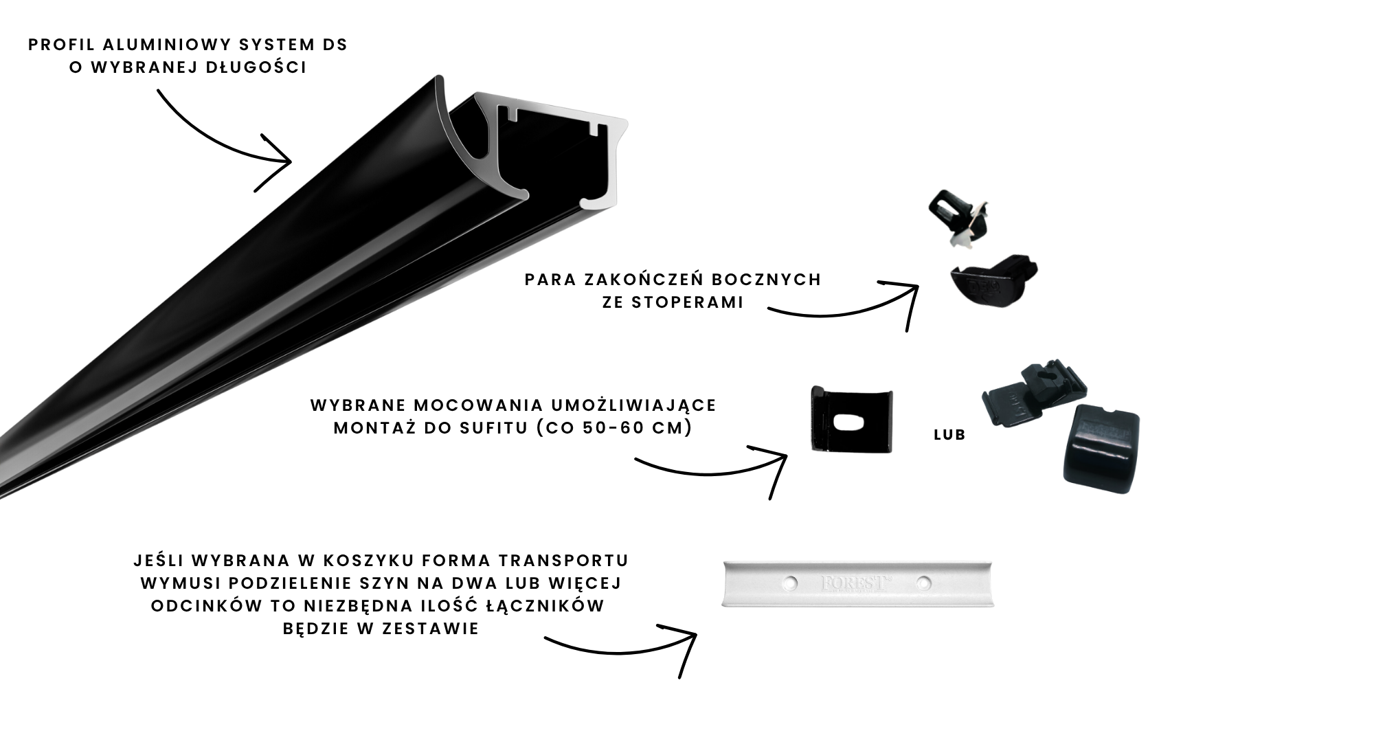 Szyna DS Forest to pewność wysokiej jakości, estetyki i funkcjonalności. Nasze aluminiowe szyny sufitowe zapewnią niezawodne wsparcie dla Twoich zasłon.