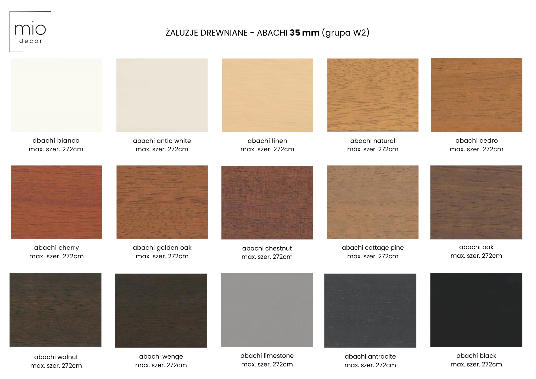 - żaluzje o szerokości do 299 cm (max. szerokość żaluzji zależy od wybranej lameli),